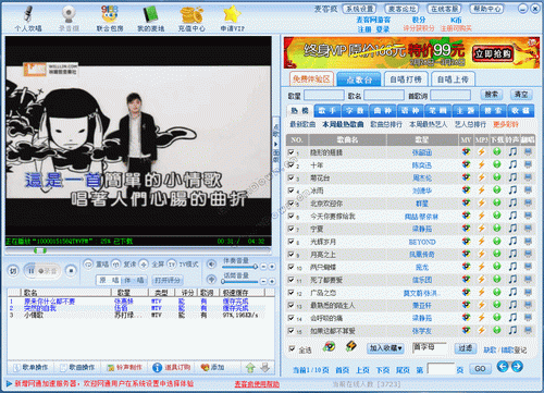 免费在线卡拉OK,免费K歌唱到爽!海量歌库、录音上传、多人包房、竞技评分、个人博客、激情视频……个人K歌娱乐,新鲜天天有利用了先进的流媒体技术,及声音信号的人工智能分析、控制和处理技术,把卡拉OK搬上了互联网,让K歌更具互动娱乐性。进入个人欢唱,您在自我陶醉之余,可以录歌并上传、还可以自拍MV上传,打造个性专辑发布在客户端软件上和你自己个人博客”麦客”中,可以评分、看看自己在十亿人中歌唱到底排第几; 在多人包房,您不仅可以和众多麦霸一起K歌、还能视频聊天,说不定还可以看到美女主持噢!。您还可以参加我们各种各样的在线活动,如:K币换积分,单曲PK等。奖金丰厚、奖品多多、各种惊喜等你拿。