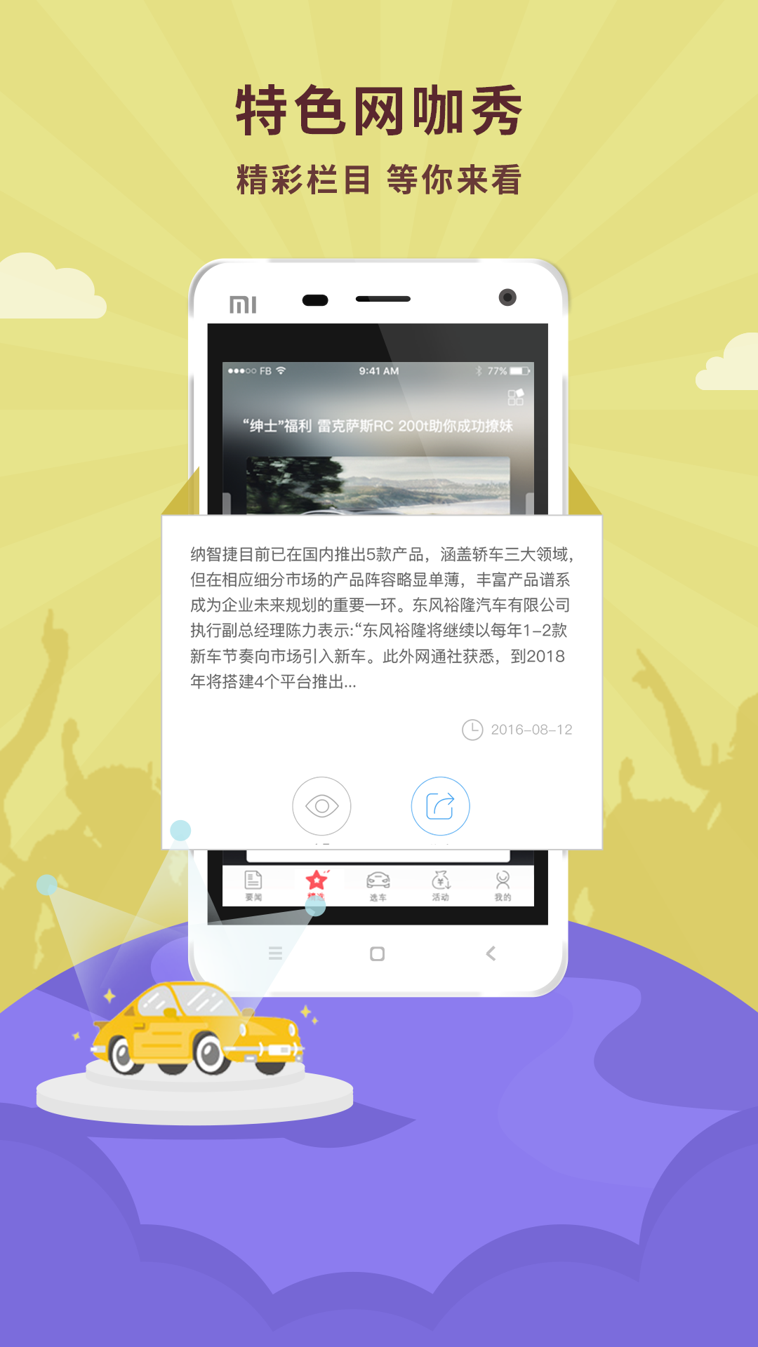 1、要闻/行情/导购/新车等海量专业原创的汽车热点;