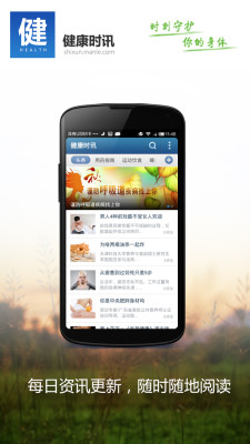 健康时讯产品简介 :优质且优质一个专注于大众健康的阅读应用!健康时讯为用户提供有效、实时、丰富的健康资讯服务,包括用药指南、孕婴知识、运动饮食等数十个板块内容,通过个性化订阅满足不同用户群体的需求,每日保持数百条的较新资讯更新量,以人文化角度真正关心大众的健康生活