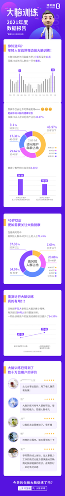 其中,“晚上11点到凌晨3点”成90后做大脑训练的活跃时间,年轻人爱熬夜做脑力训练。而年龄在45岁及以上的测试人群中,高风险占比超70%。 据了解,“大脑训练”的游戏化筛查背后的风险评估模型,是基于百余种传统的神经心理量表来搭建并修正的,由博斯腾科技联合上海交通大学附属第六人民医院老年科专家、牛津大学、密歇根大学及欧洲顶尖研究所权威专家共同研发。目前,这套智能筛查系统已在江浙沪多家三甲医院临床应用。
