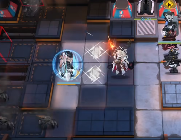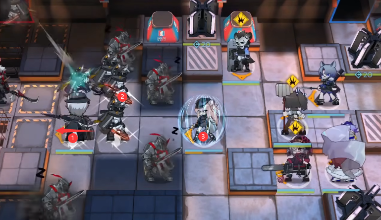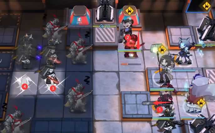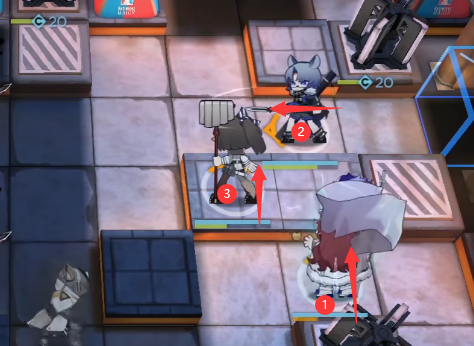 部署银灰(向左)→ 骑士徽记 → 砾(开视野)
