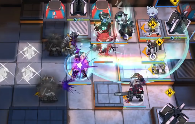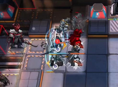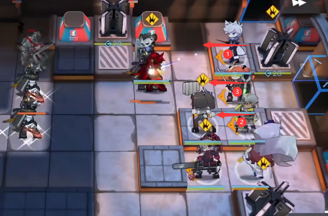 真银斩结束后撤退银灰,如图所示部署术师 → 元素奶 → 重装,然后撤退桃金娘。