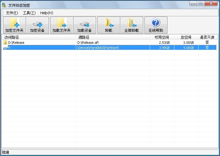 它也很容易使用,当你加载已经动态加密的文件夹或者设备之后,你访问里面的文件就像普通文件一样。当你对里面文件进行修改时,程序会自动把修改数据加密并保存到磁盘上。当你读取里面的文件,程序会自动把磁盘上数据解密。整个加密,解密过程是自动的,动态的,透明的,快速的。你几乎感觉不到加密,解密过程的存在。所有保存到磁盘上的数据都已经过加密处理。