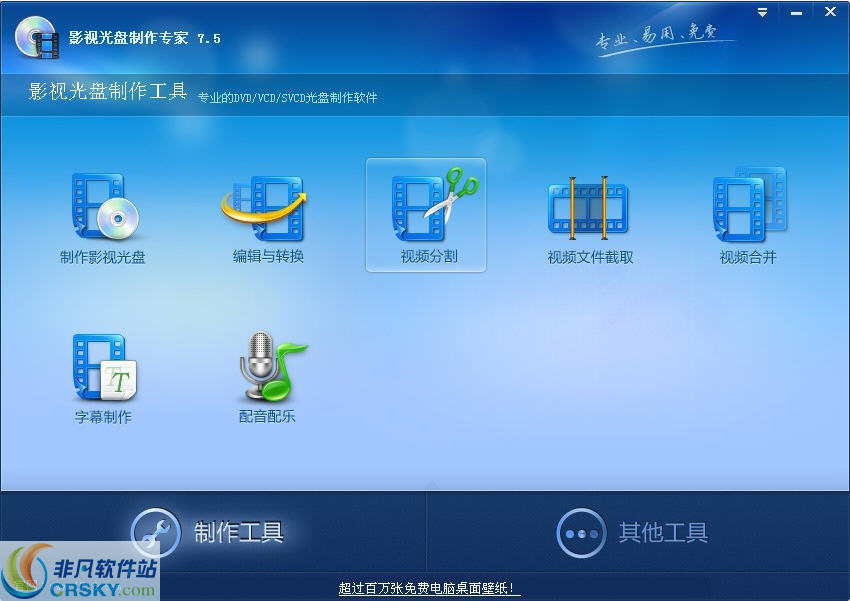 影视光盘制作专家是一款绝对专业的光盘制作软件。它可以把视频以高清和自动两种方式刻录在CD/DVD盘片上,以便在家用VCD/DVD/SVCD播放机上播放,让家人和好友与您分享快乐。