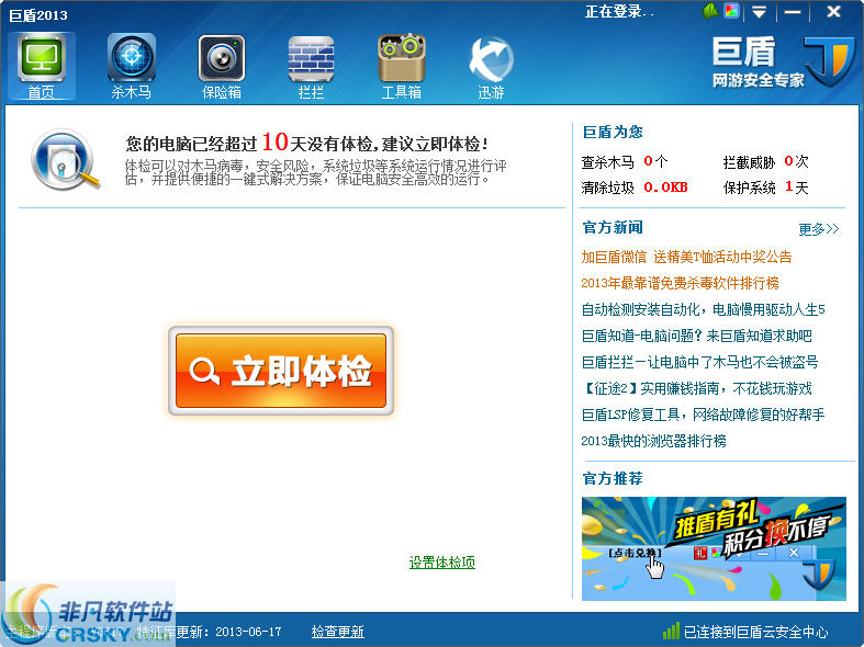 强悍的保险箱功能,巨盾保险箱支持所有游戏客户端的保护,确保用户在使用木马查杀后游戏运行在一个独立、安全的环境当中,可以放心享受游戏给您带来的愉快体验。
