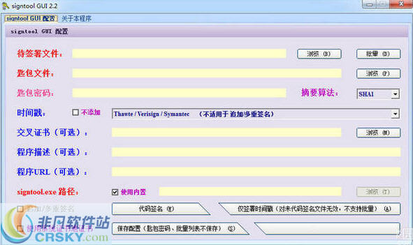 这款软件开发的初衷:微软的代码签名工具,signcode 尽管向导化,但是每次只能签名一个文件,多个文件签名存在重复操作的情形;signtool 命令行工具,签名需手工键入命令,较繁琐,对用户的dos使用提出了一定的要求.第三方工具中,有几款国产软件也做得不错,但使用过后,发现这些软件普遍不支持rfc3161协议,不支持匙包文件,对存储在操作系统中的含私钥的证书而言,安全性不高。